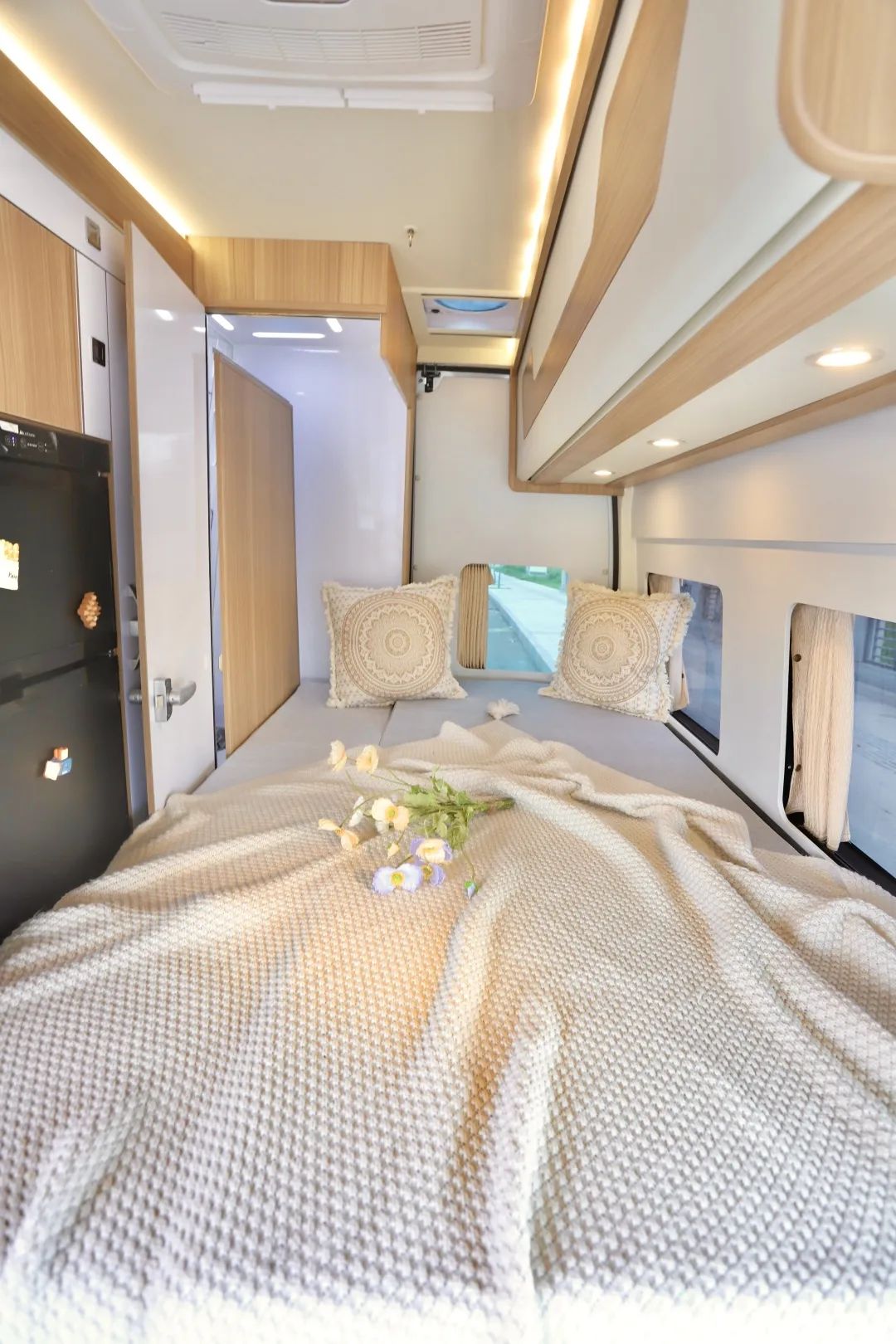 官方指导价:28.8万 底盘:江铃福顺 车身尺寸:5990×2100×2620mm 上装配置:四座五卧、内外双厨房、独立卫生间、驻车空调、观景天窗、环绕式储物吊柜...... 水电配置:2500W逆变器、400Ah锂电池、300W太阳能板、115L清水箱、55L灰水箱 更多车辆详情请点击下方图片获取 当然,除了这款车以外,其他车型也积极参与,更有小B、小飞象限时限量秒杀,最高直降9万! 约惠初秋,为您而来暨飞翔房车福顺团购节,即将火热来袭!尽请期待! 想要了解更多的飞翔房车的车型信息请点击下方网址进入官方网站: www.feixiangfangche.com 欢迎访问今日头条、抖音“飞翔房车俱乐部” 或拨打24小时服务热线400-111-0700,了解更多飞翔房车信息