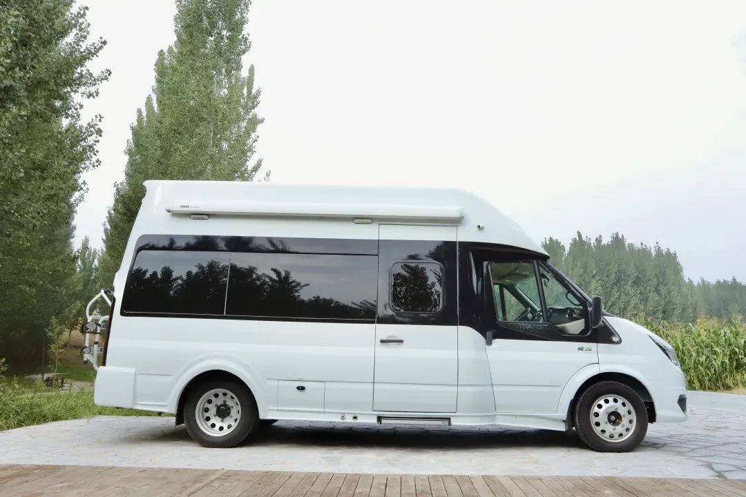 在车身上方设置有房车专用遮阳棚,无论乘凉还是赏景都是绝佳的选择,房车专用中门,设置垃圾桶、隐私帘、上下车扶手,各功能完善。