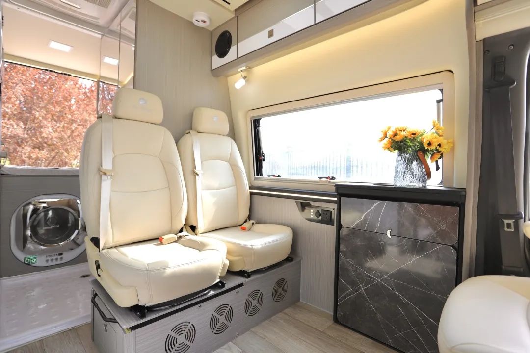 与之对应的内置厨房也安装了柴油炉,只不过是微晶面板设计,两个柴油炉都有高达5000W的火力值,五档模式可以进行调节,像燃料也是直接取自油箱,省去了携带一些燃气罐的麻烦与风险。