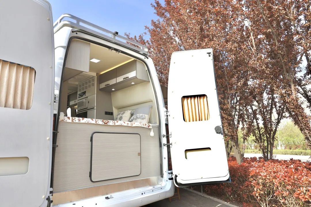 中门区域采用的推拉设计,上下车更宽敞,也方便户外厨房的设计。