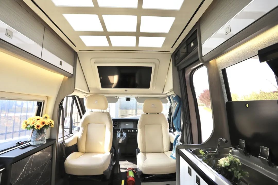 此外,这款车的水电有3000W逆变器,800Ah锂电,300W太阳能板以及132L净水和40L灰水,完全足够使用。